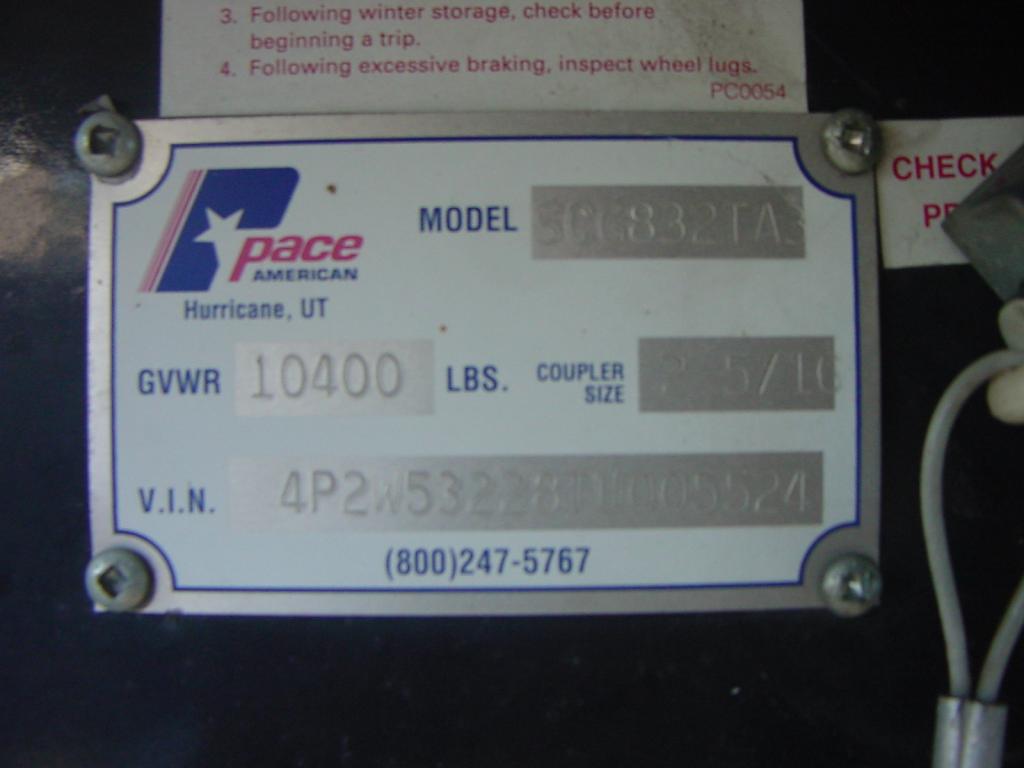 Hydraulic Jack Bubble Nose Aluminum wheels including spare New tires Brakes and wheel bearings packed this past winter Aluminum interior walls Generator compartment 110v lights Extruded Aluminum tailgate cover Vinyl checker board floor (some holes) Floor tie downs and E-Track $7500.00 OBO Howard 425-238-1688
