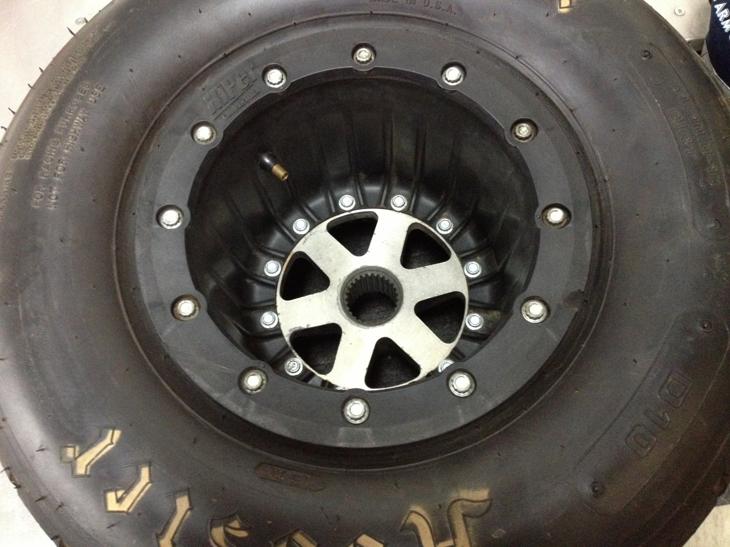 2. RR 10 X 12 6" Offset w/outer beadlock, magnesuim splined hub mounted on Hoosier 69/10.0-10 (RD15) w/mudcover