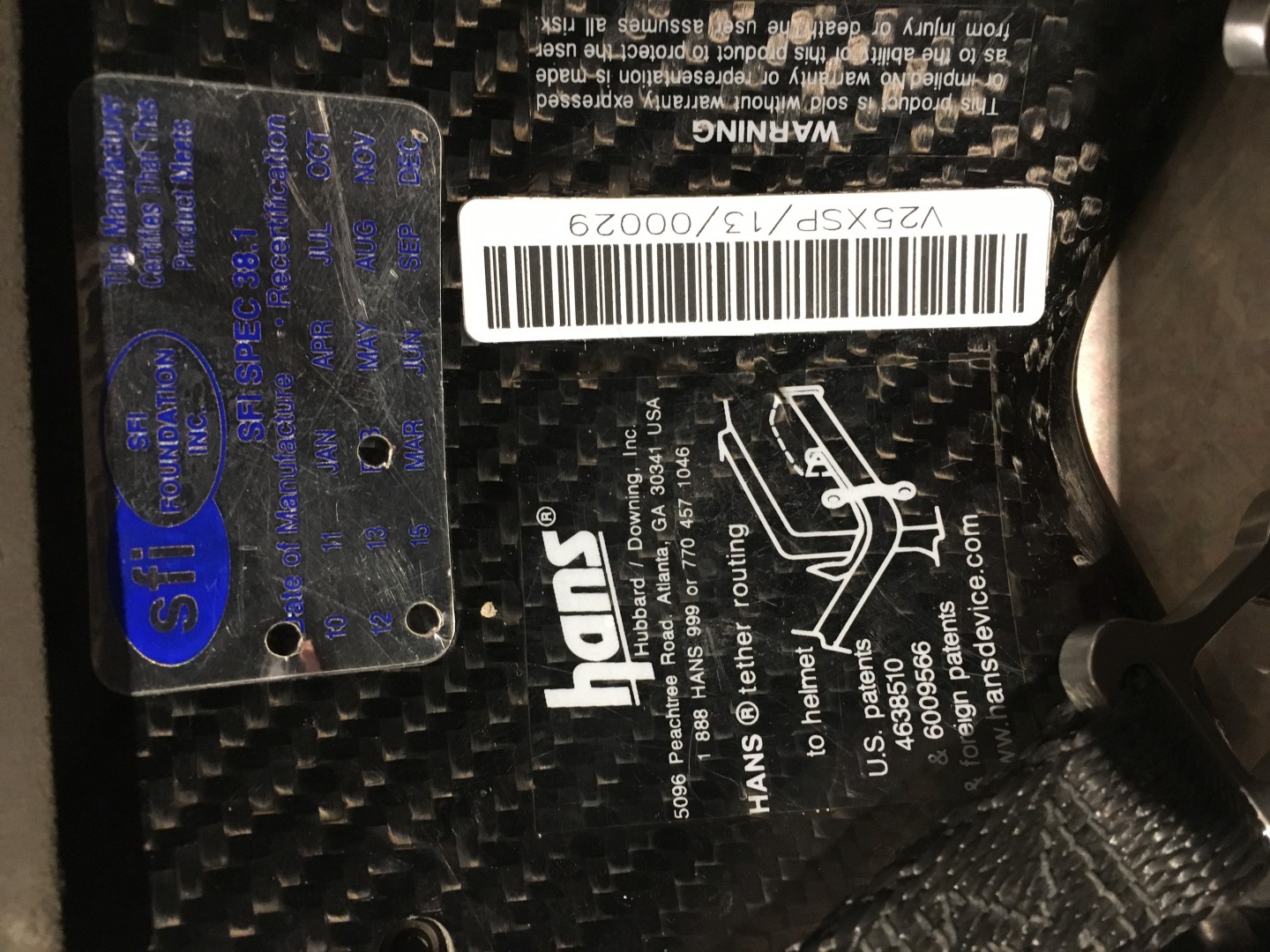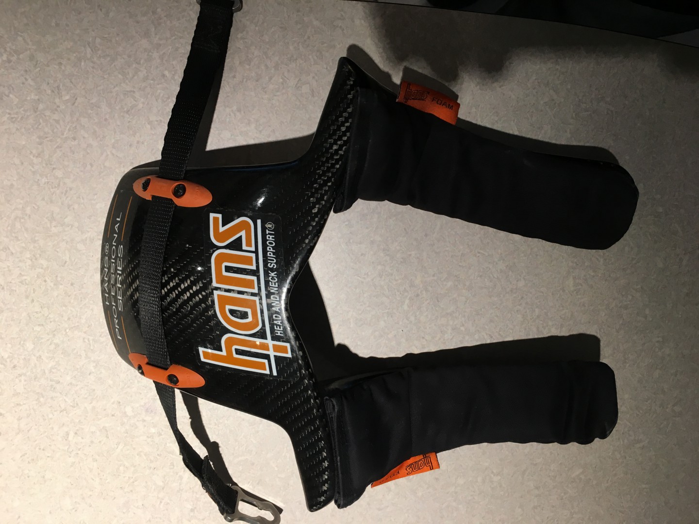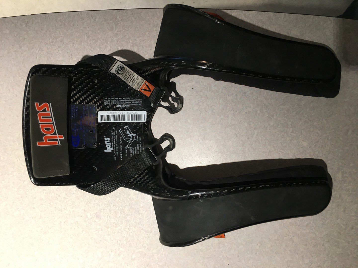 Carbon fibre HANS device. Size junior medium. Manufactured Feb. 2014. Excellent condition.