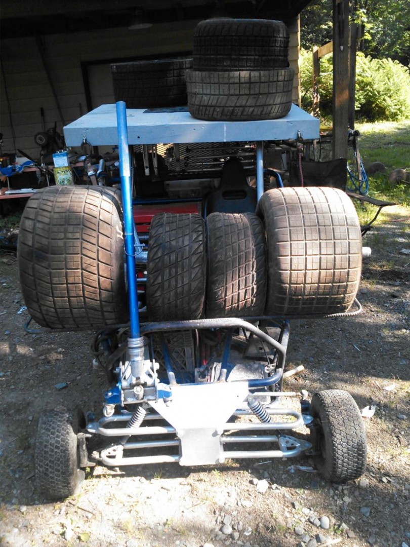 Car: 2008 PMP with full carbon fiber body. The frame is straight, never hit hard, only has one ding in the lower frame rail. Double top wing posts. Shifter moved closer to the seat. Full length aluminum floor pans. Weld 3 spoke spindles. Weld wheels. Custom pedals. Disk brake tank shield. Adjustable rear brake pressure. Joes chain roller. Electric Wing Slider. Electric radiator fan. Radiator grill, to run without nose. 14" kirkey full containment seat. ARS Left rear rebound adj. QA1 Shocks on the other 3 corners.