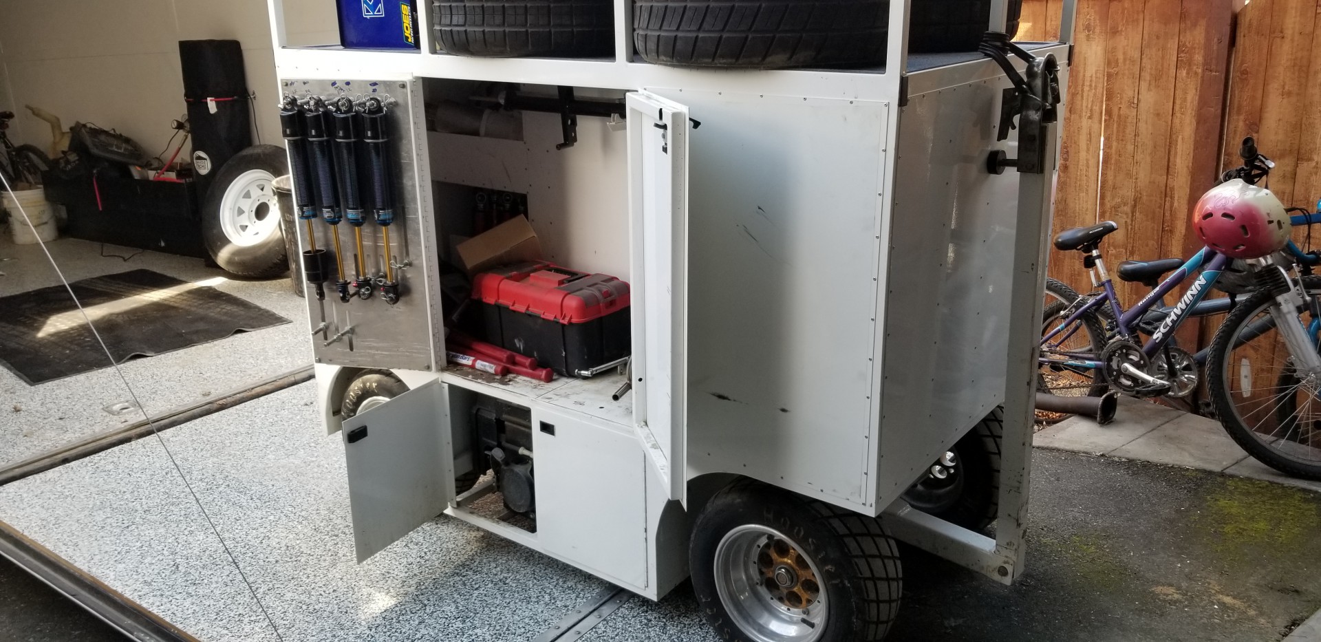Well maintained pit cart for sale. Even has an area for ice. Generator, air compressor. Electrical outlets.