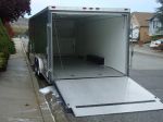 Factory laminate cabinets, 4' side door, mounted air compressor w/ hose reel, 110V outlets, 12V interior lights, aluminum interior siding, diamond plate deck, ramp and rock guard, wall mount tire rack, sprint car front end rack , helmet rack, torsion bar rack,aluminum wheels, good rubber. Great car trailer and shines up really nice!! Normal wear and tear in a few places, otherwise great overall condition . Priced to sell at $6250