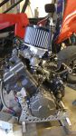 EFI by FTZ: R6R throttle bodies, FTZ Air box, FTZ's own custom velocity stack actuation.  (With wiring tweaks and reflash, this system could be used on Yamaha, Suzuki or Kawi as well- no hard parts are altered to fit Honda)